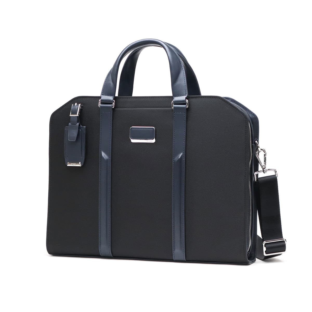 優れた耐久性とデザイン、そしてビジネスシーンで活躍する高い機能性を備えた限定コレクション『JARVIS』のアングルをつけたコーナーがシャープなデザインのブリーフケース。