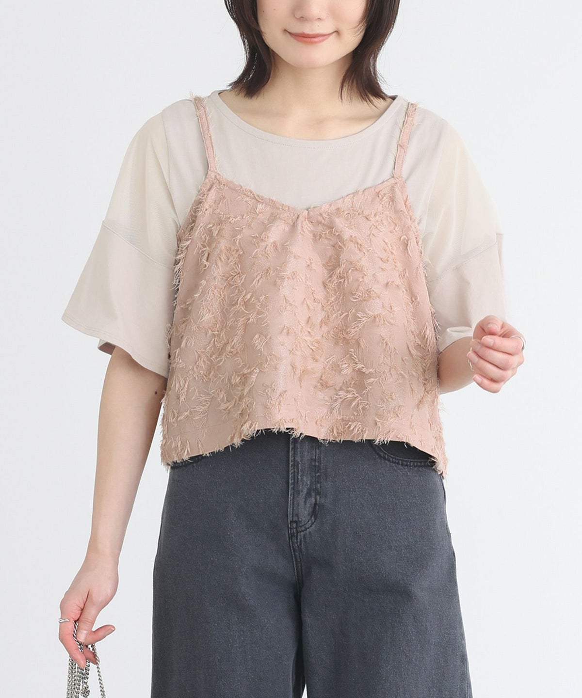 ■ジャカードキャミソール【5】【SALE】 1(M~L) ピンクベージュ