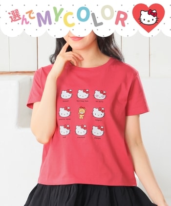 「選んでMY COLOR」シリーズ!【デザイン】日常も特別な日も、さらに楽しくしてくれるサンリオキャラクターズの"選んでMY COLOR"のアイテムがオンラインショップ&一部店舗限定で登場!短めの袖丈と裾丈でコンパクトながら、体のラインを拾いにくいシルエットでトレンドライクな印象に◎さまざまな表情がキュートな「ハローキティ」「マイメロディ」「シナモロール」「クロミ」「ポチャッコ」「ハンギョドン」「ポムポムプリン」「バッドばつ丸」「こぎみゅん」のポップなプリント!中央には仲良しな「タイニーチャム」「りすくん」「みるく」「バク」「ピーちゃん」「さゆり」「マフィン」「グッドはな丸」「こぎみょん」のオシャレな刺繍でアクセントをプラス♪バックの首元に入ったロゴプリントで抜け感UP!気分を盛り上げてくれる赤、オレンジ、ピンク、紫、黄色、青、緑、黒、白の9色展開。【素材・機能】肌触りのよい綿100%素材。【スタイル】流行りのクロップド丈で、デニムやワイドパンツ、ミニスカなどと合わせたカジュアルコーデと好相性!ロングスカートで大人っぽく、チュールスカートやフリルトップスで甘めテイストにも◎フロントプリントだから、日差しや冷房の対策になる、ラッシュガードやパーカーのインでもおしゃれ映え。学校のイベントや推し活のライブ・遠征にはもちろん、ワンマイルウェアやルームウェア、普段着の差し色としても◎誕生日や特別な日のギフト、自分へのご褒美プレゼントにもぴったり。キッズから大人まで着られるサイズ展開で、家族とのリンクコーデやお友だちとのペアコーデにもおすすめ♪同じ9色展開の「選んでMY COLOR」シリーズアイテムのラインナップにも注目!●サンリオキャラクターズ選んでMY COLORシリーズアイテム・サンリオキャラクターズ/Tシャツ(品番:5080139928)・サンリオキャラクターズ/Tシャツ(品番:5080139929)・サンリオキャラクターズ/キャリーオントート(品番:2771219529)WEB限定※時期により未販売または売り切れの場合がございます。© 2026 SANRIO CO., LTD. APPROVAL NO. L665824 ●商品サイズ(cm)[SS]バスト88・身丈48・袖丈14・肩幅35[S]バスト94・身丈50・袖丈15・肩幅37[M]バスト100・身丈52・袖丈17・肩幅39[L]バスト106・身丈54・袖丈18・肩幅41[LL]バスト112・身丈56・袖丈20・肩幅43[3L]バスト118・身丈58・袖丈21・肩幅45※サイズにつきましては若干の誤差が生じる場合がございます。予めご了承ください。※モデル着用サイズ:Mサイズ ●品質/表地 綿 100%・別布 綿 95%・ポリウレタン 5%■バングラデシュ製 ●商品サイズ(cm)サイズ,バスト,身丈,袖丈,肩幅SS,88,48,14,35S,94,50,15,37M,100,52,17,39L,106,54,18,41LL,112,56,20,433L,118,58,21,45