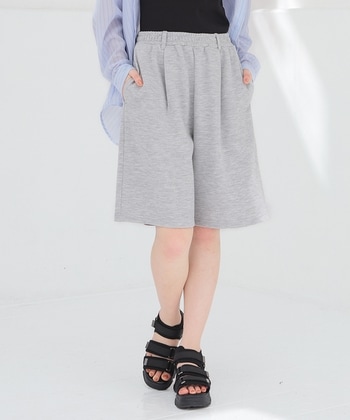 ストレスフリーなはき心地【デザイン】ウエスト総ゴムとハーフ丈でリラックス感のあるデザイン。脚をすっきり見せる裾広がりのシルエット。お手持ちのベルトと合わせて使えるベルトループ付き。自分にぴったりが見つかる、小学校高学年対応の150サイズとS~LLまでの豊富なサイズ展開。【素材・機能】両面が滑らかな、綿混のきれいめスウェット素材。サイドにもバックにも、便利なポケット付き。【スタイル】Tシャツを合わせたカジュアルスタイルはもちろん、シアーシャツを合わせた大人っぽいスタイリングも◎普段使いにもおうち時間にも活躍。 ●商品サイズ(cm)[150]ウエスト56・ウエスト最大伸86・ヒップ107・股下22・股上29・ワタリ幅34・裾幅31[S]ウエスト60・ウエスト最大伸90・ヒップ111・股下22・股上29・ワタリ幅35・裾幅32[M]ウエスト64・ウエスト最大伸94・ヒップ115・股下23・股上30・ワタリ幅36・裾幅33[L]ウエスト68・ウエスト最大伸100・ヒップ121・股下23・股上30・ワタリ幅38・裾幅35[LL]ウエスト72・ウエスト最大伸106・ヒップ127・股下24・股上31・ワタリ幅40・裾幅36※サイズにつきましては若干の誤差が生じる場合がございます。予めご了承ください。※モデル着用サイズ:Mサイズ※ウエスト最大伸は生地の伸び分を除く※ウエスト部分ゴム ●品質/表地 ポリエステル 75%・綿 25%■バングラデシュ製 ●商品サイズ(cm)サイズ,ウエスト,ウエスト最大伸,ヒップ,股下,股上,ワタリ幅,裾幅150,56,86,107,22,29,34,31S,60,90,111,22,29,35,32M,64,94,115,23,30,36,33L,68,100,121,23,30,38,35LL,72,106,127,24,31,40,36