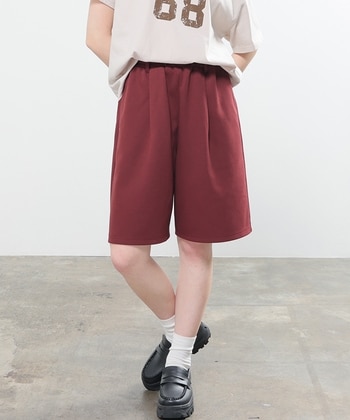 ストレスフリーなはき心地【デザイン】ウエスト総ゴムとハーフ丈でリラックス感のあるデザイン。脚をすっきり見せる裾広がりのシルエット。お手持ちのベルトと合わせて使えるベルトループ付き。自分にぴったりが見つかる、小学校高学年対応の150サイズとS~LLまでの豊富なサイズ展開。【素材・機能】両面が滑らかな、綿混のきれいめスウェット素材。サイドにもバックにも、便利なポケット付き。【スタイル】Tシャツを合わせたカジュアルスタイルはもちろん、シアーシャツを合わせた大人っぽいスタイリングも◎普段使いにもおうち時間にも活躍。 ●商品サイズ(cm)[150]ウエスト56・ウエスト最大伸86・ヒップ107・股下22・股上29・ワタリ幅34・裾幅31[S]ウエスト60・ウエスト最大伸90・ヒップ111・股下22・股上29・ワタリ幅35・裾幅32[M]ウエスト64・ウエスト最大伸94・ヒップ115・股下23・股上30・ワタリ幅36・裾幅33[L]ウエスト68・ウエスト最大伸100・ヒップ121・股下23・股上30・ワタリ幅38・裾幅35[LL]ウエスト72・ウエスト最大伸106・ヒップ127・股下24・股上31・ワタリ幅40・裾幅36※サイズにつきましては若干の誤差が生じる場合がございます。予めご了承ください。※モデル着用サイズ:Mサイズ※ウエスト最大伸は生地の伸び分を除く※ウエスト部分ゴム ●品質/表地 ポリエステル 75%・綿 25%■バングラデシュ製 ●商品サイズ(cm)サイズ,ウエスト,ウエスト最大伸,ヒップ,股下,股上,ワタリ幅,裾幅150,56,86,107,22,29,34,31S,60,90,111,22,29,35,32M,64,94,115,23,30,36,33L,68,100,121,23,30,38,35LL,72,106,127,24,31,40,36