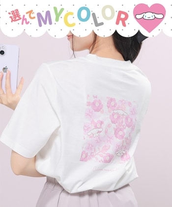 ■【Honeys公式 / ハニーズ】サンリオキャラクターズ/Tシャツ(お花かくれんぼ) レディース L シナモロール プチプラ