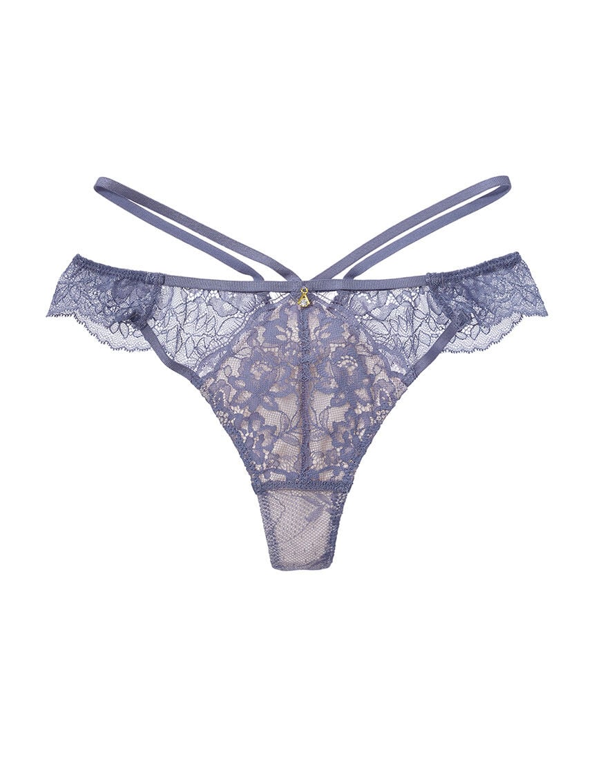 【フロント】・ストレッチレースを斜めに使い、右サイドに3本のストリングを配した、大胆でインポートライクなデザイン。・ストレッチレースにはストレッチサテンの裏打ちを施し、透けにくい。・右サイドは、ストリングの間から肌をのぞかせてセクシー。・センターに、しずく型のラインストーンチャームが輝く。・脚ぐりは、ストレッチサテンのバインディング。【バック】・バックパネルはストレッチレースで、ふちはストレッチサテンのバインディング。・上部左右にホールを配して、さりげなく色気のあるディテール。【はき込み】・ローライズ(浅め)【クロッチ】・表側はストレッチレース・肌側はコットン混【ドラマティックな日常がはじまる。-SALON by PEACH JOHN-】ライフスタイルに上質を求める女性に向けたランジェリー、ラウンジウェアブランド。リアルユースで活躍する機能性と着心地の良さを備え、日常のルーティンをドラマティックに変える色気をプラスしてお届けします。