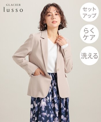 オンもオフも美しく【デザイン】ベーシックなテーラードカラーの1つボタンタイプ。スカートにもパンツにも合う丈感と程よくシェイプされたウエストラインのすっきり見えシルエット。バックベンツと後身頃に裏地のない背抜き仕様で突っ張り感を軽減し、気温の高いシーズンでも快適。【素材・機能】ストレッチの利いたツイル素材とバックのベンツで、動きやすくストレスフリーな着心地。家庭用の洗濯機で洗える『ウォッシャブル』と、洗濯後もシワになりにくい『イージーケア』の機能付きで、お手入れもラクラク。【スタイル】ワイドパンツやスカートに合わせたきれいめ通勤スタイルはもちろん、ブラウス合わせのお出かけフェミニンスタイルやデニム×ロンTに合わせたカジュアルスタイルにも、幅広く活躍。ワンピースの上にサラッと羽織るのも◎同素材のパンツもご用意しています。よりスタイリッシュに決まるセットアップでの着用もおすすめです。●セットアップ商品・テーラードジャケット(品番:7730418497)・テーパードパンツ(品番:5730731048)※時期により未販売または売り切れの場合がございます。 ●商品サイズ(cm)[S]バスト91・身丈59・袖丈55・肩幅37[M]バスト95・身丈61・袖丈56・肩幅38[L]バスト99・身丈62・袖丈57・肩幅39[LL]バスト105・身丈64・袖丈57・肩幅40※サイズにつきましては若干の誤差が生じる場合がございます。予めご了承ください。※モデル着用サイズ:Mサイズ※身丈は衿ぐり肩位置から後裾まで ●品質/表地 ポリエステル 96%・ポリウレタン 4%・裏地 ポリエステル 100%●裏地/後身頃以外あり■ミャンマー製※裾後中心ベンツあり ●商品サイズ(cm)サイズ,バスト,身丈,袖丈,肩幅S,91,59,55,37M,95,61,56,38L,99,62,57,39LL,105,64,57,40