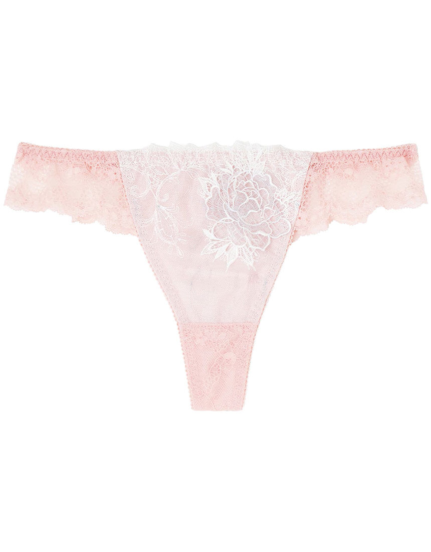 妖艶な孔雀の羽をモチーフにした、ラメラインが繊細に彩るレースを使用したTバックデザインショーツ。華やかさと繊細さが見事に融合し、上品でエレガントな雰囲気を漂わせます。さらに、バラと葉のアップリケモチーフが加わることで、より一層華やかな印象を与え、ラグジュアリーで洗練された世界へと誘います。このショーツは、ブラとのコーディネートにも最適で、より一層魅力的なセットを完成させます。Tバックデザインは、アウターにひびきにくく、ヒップを美しくすっきりとしたシルエットを保ちます。