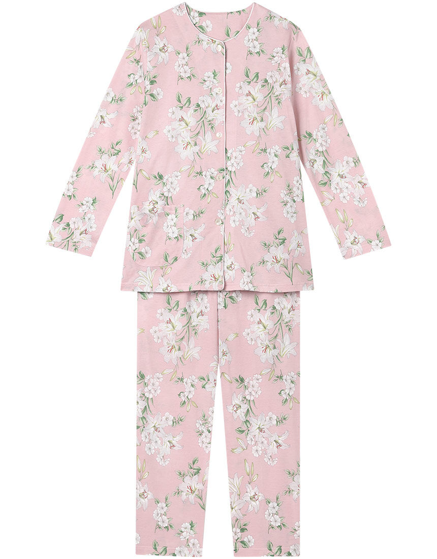 ■【綿100%】大胆で華やかな印象のリリープリント パジャマ