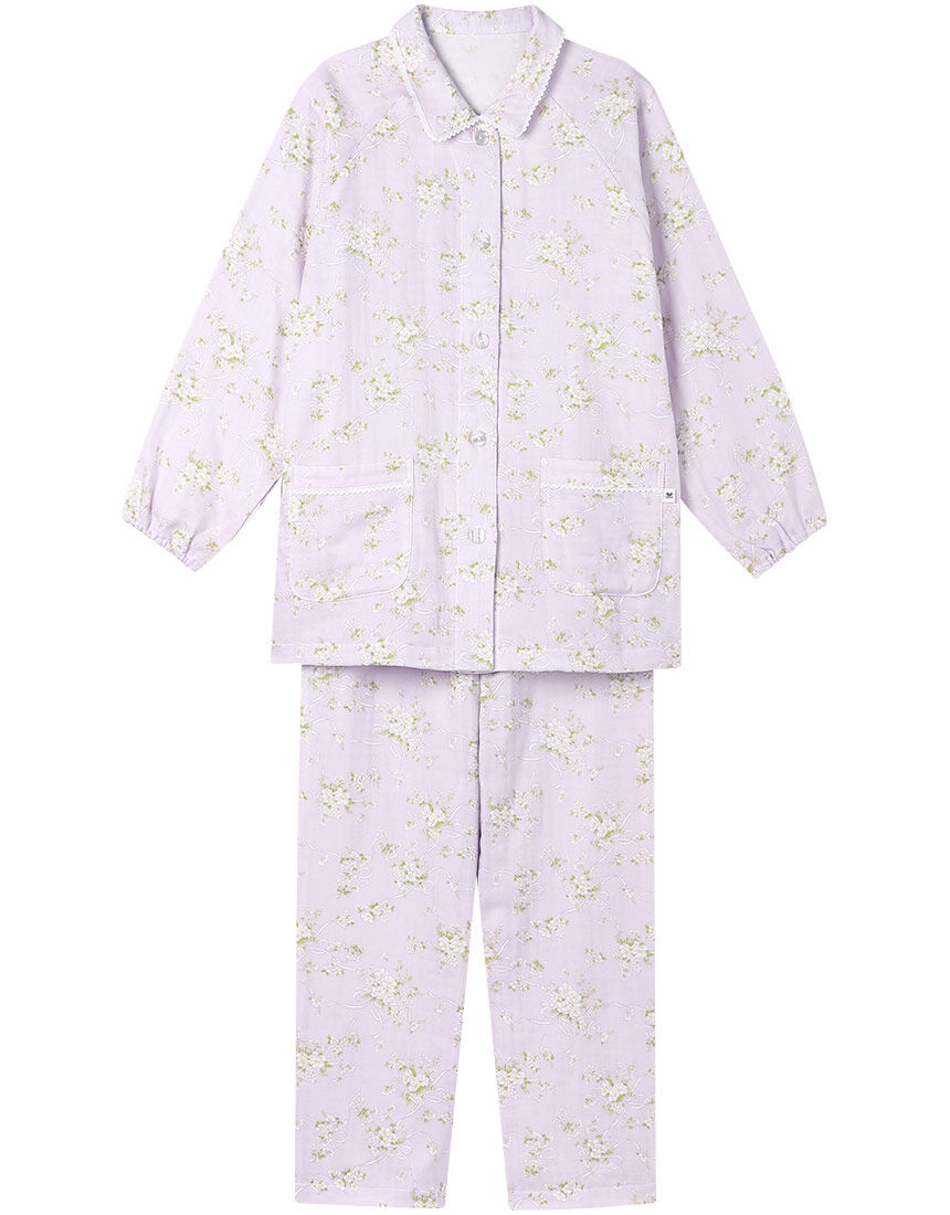 ワコール人間科学研究開発センターの体型データをもとに開発した、ゆったりとしたシルエット●本体に、通気性と吸汗速乾性のよい綿100%の二重ガーゼを使用●やさしい肌ざわり●低めの小さめな襟で、首まわりゆったり●フレアーシルエットで気になる腹部をカバー●ゆとりがありながら、すっきり見える脇線や袖下のライン●あたたかみのある光を感じさせる小花プリント<ワコール独自のゆったりシルエット設計のポイント>・腕まわりゆったり・ゆとりのあるバストまわり・肩ゆったりシルエット・後ろネックに縫い付けネームがなく、やさしい肌あたり・ゆとりのあるウエストまわり・おなかからヒップの立体設計【サイズ詳細】S:着丈67.0cm 身丈70.0cm 身幅53.0cm 肩幅44.0cm 袖丈51.5cm ボトム脇丈95.0cm ウエスト53.0cm 裾まわり38.5cm ヒップ104.0cm 股下(レングス)66.5cm M:着丈67.0cm 身丈70.5cm 身幅56.0cm 肩幅46.0cm 袖丈52.0cm ボトム脇丈95.0cm ウエスト58.0cm 裾まわり40.0cm ヒップ108.0cm 股下(レングス)66.5cm L:着丈69.0cm 身丈72.5cm 身幅59.0cm 肩幅48.0cm 袖丈52.5cm ボトム脇丈96.0cm ウエスト63.0cm 裾まわり41.5cm ヒップ112.0cm 股下(レングス)66.5cm LL:着丈69.0cm 身丈72.5cm 身幅62.0cm 肩幅50.0cm 袖丈53.0cm ボトム脇丈96.0cm ウエスト68.0cm 裾まわり43.0cm ヒップ116.0cm 股下(レングス)66.5cm※出来上がり寸法を表示しております※サイズ詳細の寸法には多少の差異がございます出来上がり寸法の測り方についてはこちら