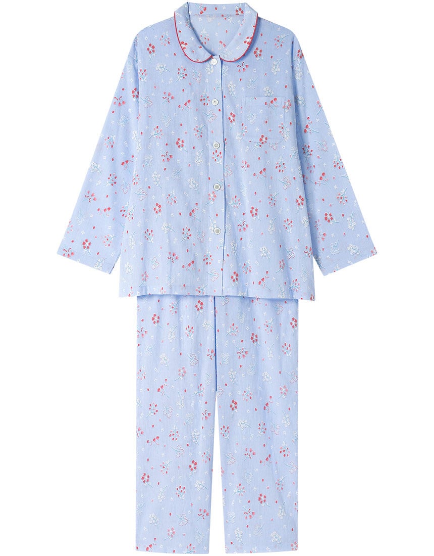 ■【綿混】家庭用タンブル乾燥機対応 可憐なイメージの野に咲く花のブーケプリント/グランダー パジャマ