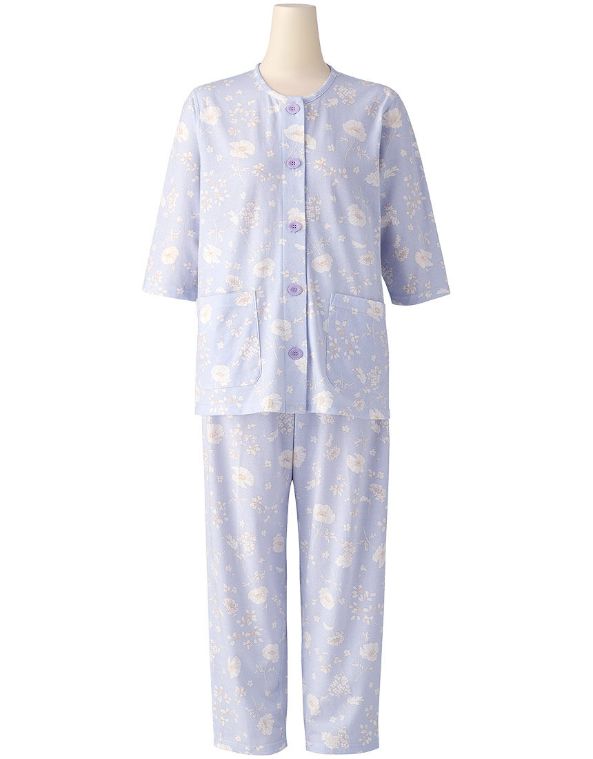 ・本体に、綿100%のリップル素材を使用・リップル加工により凹凸があり肌ばなれがよく、暑い時期におすすめ・可憐で透明感のある、ホワイトフラワープリント・袖口、ボトム裾口=ゴム通し口有り【サイズ詳細】ロング袖・ロング丈パンツM:身幅53.0cm 着丈67.0cm 身丈69.5cm 肩幅46.0cm 袖丈52.0cm ボトム脇丈95.0cm 裾まわり41.0cm ウエスト58.0cm ヒップ107.5cm 股下(レングス)66.0cm L:身幅57.0cm 着丈67.0cm 身丈69.5cm 肩幅48.0cm 袖丈52.0cm ボトム脇丈95.5cm 裾まわり43.0cm ウエスト63.0cm ヒップ111.5cm 股下(レングス)65.5cm LL:身幅61.0cm 着丈68.0cm 身丈71.0cm 肩幅49.0cm 袖丈52.5cm ボトム脇丈96.0cm 裾まわり46.0cm ウエスト68.0cm ヒップ116.5cm 股下(レングス)66.0cm※出来上がり寸法を表示しております※サイズ詳細の寸法には多少の差異がございます 出来上がり寸法の測り方についてはこちら※アイテムによって柄の出方が異なりますのでご了承ください