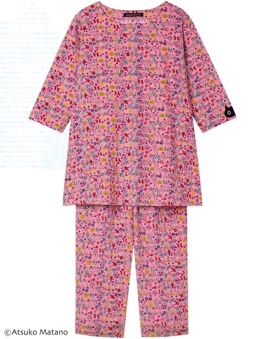 【パジャマ(7分袖8分丈パンツ)】クリエーター"俣野温子"氏がデザインする、甘くなりすぎない大人かわいいテキスタイルとカラーで、くつろぎ時間を楽しく過ごせるパジャマ&ルームウェア・綿100%のクレープ素材を使用・自然や暮らしの小さなモチーフが集まった、見ているだけで穏やかな雰囲気に包まれるような、やさしい色合いのテキスタイル・左袖口の黒猫のアップリケがデザインポイント・トップス両サイドにポケットあり同じ柄のワンピースもございますワンピースはこちら【サイズ詳細】M:身幅53.5cm 着丈67.5cm 身丈72.0cm 肩幅39.0cm 袖丈38.5cm ボトム脇丈82.0cm 裾まわり45.0cm ウエスト58.0cm ヒップ107.0cm 股下(レングス)53.0cm L:身幅57.5cm 着丈67.5cm 身丈72.0cm 肩幅40.5cm 袖丈38.5cm ボトム脇丈82.5cm 裾まわり47.0cm ウエスト63.0cm ヒップ111.0cm 股下(レングス)53.0cm LL:身幅61.5cm 着丈68.5cm 身丈73.0cm 肩幅42.0cm 袖丈39.0cm ボトム脇丈83.0cm 裾まわり50.0cm ウエスト68.0cm ヒップ116.0cm 股下(レングス)53.5cm3L:身幅65.5cm 着丈69.5cm 身丈74.5cm 肩幅43.5cm 袖丈39.0cm ボトム脇丈83.5cm 裾まわり53.0cm ウエスト73.0cm ヒップ121.0cm 股下(レングス)53.0cm4L:身幅69.5cm 着丈70.5cm 身丈75.5cm 肩幅45.0cm 袖丈39.0cm ボトム脇丈84.0cm 裾まわり56.0cm ウエスト78.0cm ヒップ126.0cm 股下(レングス)52.5cm※出来上がり寸法を表示しております※サイズ詳細の寸法には多少の差異がございます出来上がり寸法の測り方についてはこちら※アイテムによって柄の出方が異なりますのでご了承ください。