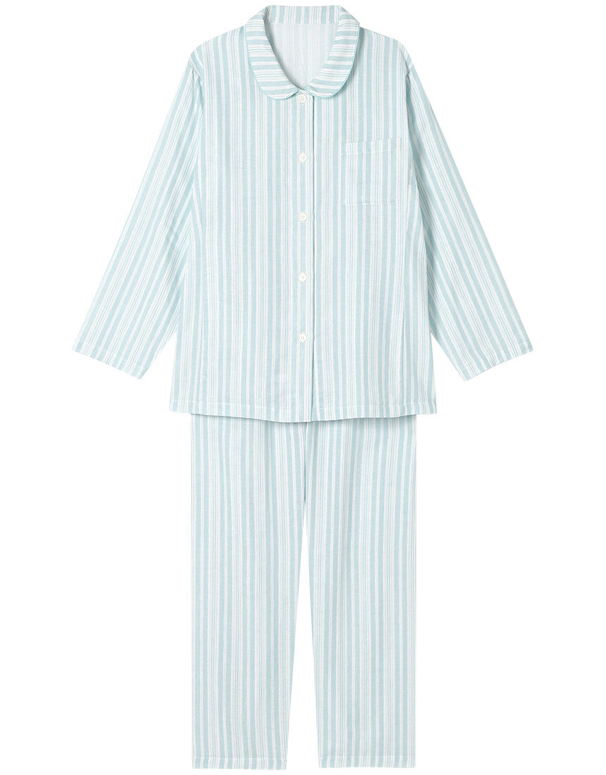 ■【綿100%】ムレにくく、サラサラ 通気性のよい二重ガーゼ ランダムストライプ柄 パジャマ