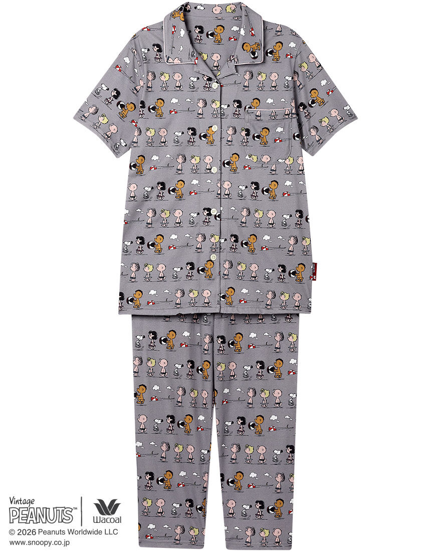 1950年に新聞コミックとしてスタートした「PEANUTS」とワコールがコラボレーション。世界中で愛されるスヌーピーや個性豊かな仲間たちのデザインでおうち時間を楽しんで。・本体に、暑い季節にここちよいシャリ感のある強撚糸を用いた綿100%の天竺素材を使用・スヌーピーと仲間たちが海で夏を楽しむ様子をプリント・パイピングのカラーもアクセントに【サイズ詳細】5分袖・8分丈パンツM:身幅53.0cm 着丈67.0cm 身丈69.5cm 肩幅42.0cm 袖丈20.0cm ボトム脇丈86.0cm 裾まわり42.0cm ウエスト58.0cm 股下(レングス)57.0cm ヒップ103.0cm L:身幅57.0cm 着丈67.0cm 身丈69.5cm 肩幅44.0cm 袖丈20.0cm ボトム脇丈86.5cm 裾まわり44.0cm ウエスト63.0cm 股下(レングス)56.5cm ヒップ107.0cm※出来上がり寸法を表示しております※サイズ詳細の寸法には多少の差異がございます 出来上がり寸法の測り方についてはこちら※アイテムによって柄の出方が異なりますのでご了承ください。
