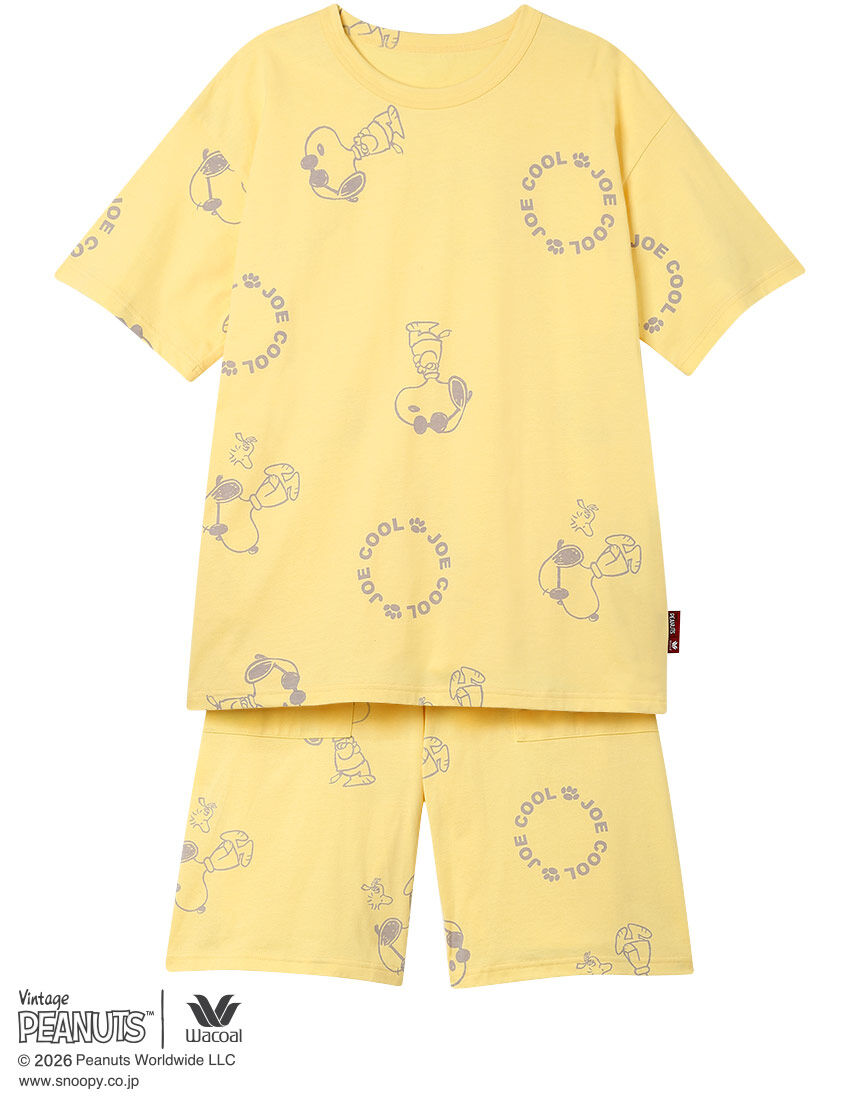 1950年に新聞コミックとしてスタートした「PEANUTS」とワコールがコラボレーション。世界中で愛されるスヌーピーや個性豊かな仲間たちのデザインでおうち時間を楽しんで。・本体に、環境に配慮したオーガニックコットン100%の天竺素材を使用・サングラスをかけたCOOLなスヌーピー(JOE COOL)とウッドストックをプリント・アウターライクなデザインで、リラックスシーンにもおすすめ※オーガニックコットンは、栽培時の農薬や化学肥料の使用をおさえ、土壌汚染など環境に配慮した素材【サイズ詳細】5分袖・5分丈パンツM:身幅53.5cm 着丈67.0cm 身丈69.0cm 肩幅53.0cm 袖丈19.5cm ボトム脇丈55.0cm 裾まわり63.0cm ウエスト58.0cm 股下(レングス)24.5cm ヒップ111.0cm L:身幅57.5cm 着丈67.0cm 身丈69.0cm 肩幅54.0cm 袖丈19.5cm ボトム脇丈55.5cm 裾まわり65.0cm ウエスト63.0cm 股下(レングス)24.5cm ヒップ115.0cm※出来上がり寸法を表示しております※サイズ詳細の寸法には多少の差異がございます 出来上がり寸法の測り方についてはこちら※アイテムによって柄の出方が異なりますのでご了承ください。