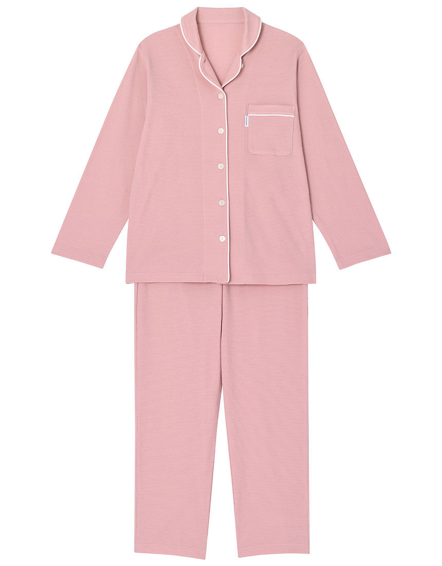 超長綿のなかでも、さらに繊維長の長いものだけを厳選して紡績した、希少価値の高い『天綿』を使用【パジャマ(ロング袖ロング丈パンツ)】・『天綿』を100%使用したワッフル素材・なめらかでやわらかい上質な風合い・表面は凹凸のあるワッフル調、肌側はフラットな組織に編み立てることで、通気性がよく、肌あたりのやさしい軽い着ごこちに※メンズパジャマもございます。メンズパジャマはこちら【サイズ詳細】M:身幅53.0cm 身丈68.5cm 着丈66.0cm 肩幅42.5cm 袖丈54.0cm ボトム脇丈95.0cm 裾まわり41.5cm ウエスト55.0cm ヒップ103.5cm 股下(レングス)65.0cm L:身幅57.0cm 身丈69.0cm 着丈66.0cm 肩幅44.0cm 袖丈54.0cm ボトム脇丈95.5cm 裾まわり43.5cm ウエスト59.0cm ヒップ107.5cm 股下(レングス)65.0cm LL:身幅61.0cm 身丈70.0cm 着丈67.0cm 肩幅45.5cm 袖丈54.5cm ボトム脇丈96.0cm 裾まわり46.5cm ウエスト64.0cm ヒップ112.5cm 股下(レングス)65.0cm※出来上がり寸法を表示しております※サイズ詳細の寸法には多少の差異がございます出来上がり寸法の測り方についてはこちら【ワコール 睡眠科学】"眠る時間を、夢の時間に"睡眠が豊かになれば、毎日の暮らしはもっと活力に満ちたものになる。"眠る時間を、夢の時間に"をコンセプトに、パジャマをはじめ睡眠アイテムを幅広くそろえ、喜びあふれる明日へと導きます。 パジャマの選び方のポイントはこちら【綿100%】パジャマ・ルームウェアはこちらを、【綿混】パジャマ・ルームウェアはこちらをチェック!