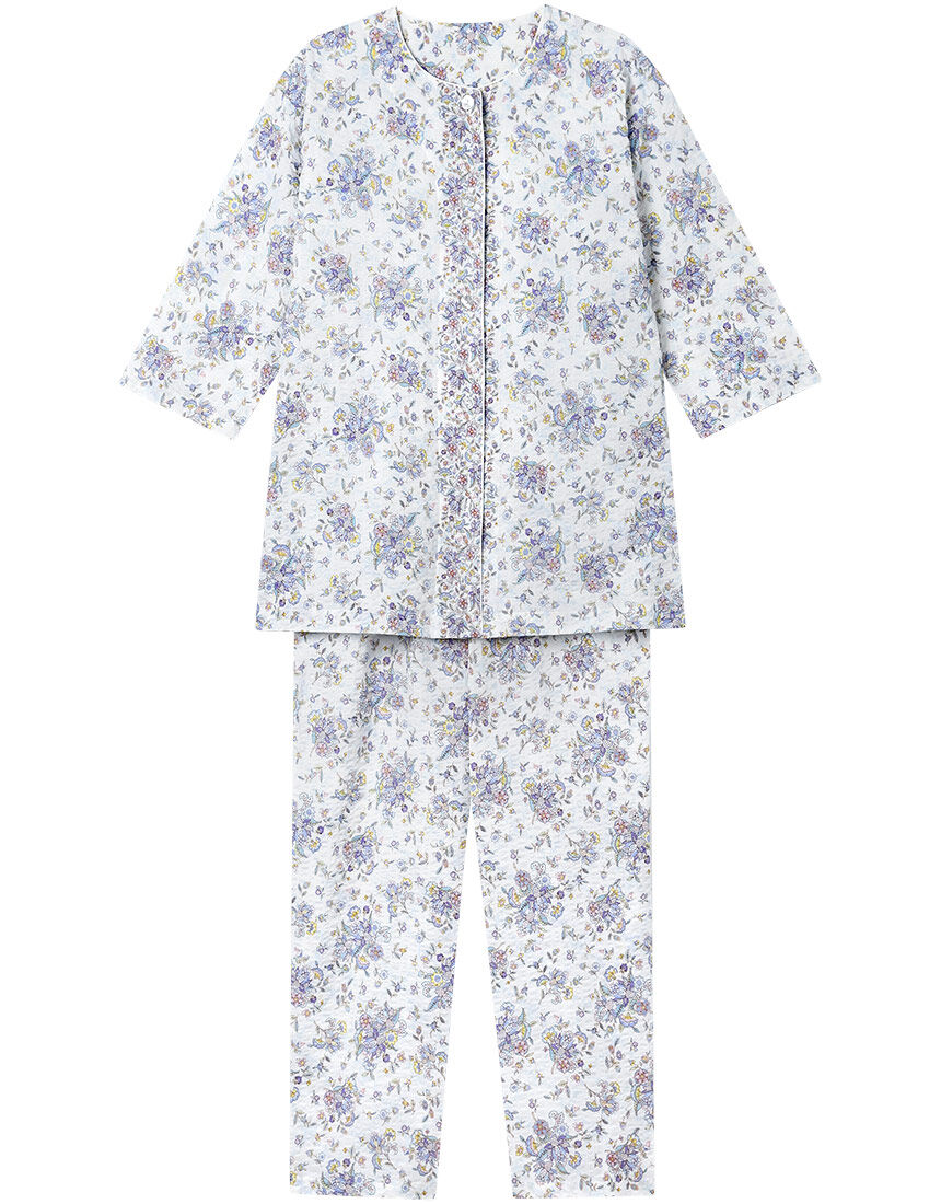 ■【綿100%】腕が動かしやすい 美しい花柄プリント/グランダー パジャマ