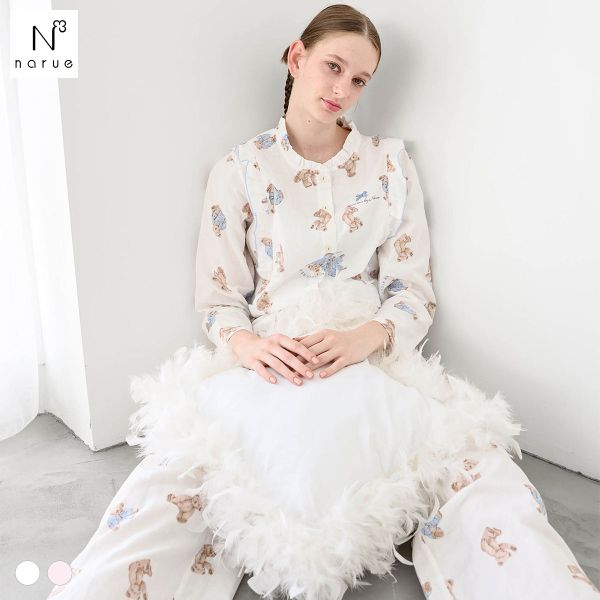 ■ナルエー パジャマ コットンダブルガーゼおやすみベアフリルパジャマ ルームウェア ロングパンツ 長袖 上下セット 綿100% NARUE