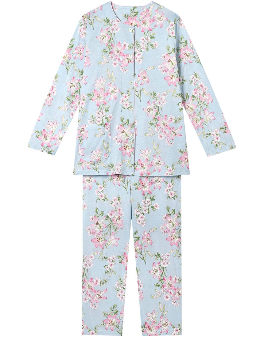 ■【綿100%】大胆で華やかな印象のリリープリント パジャマ