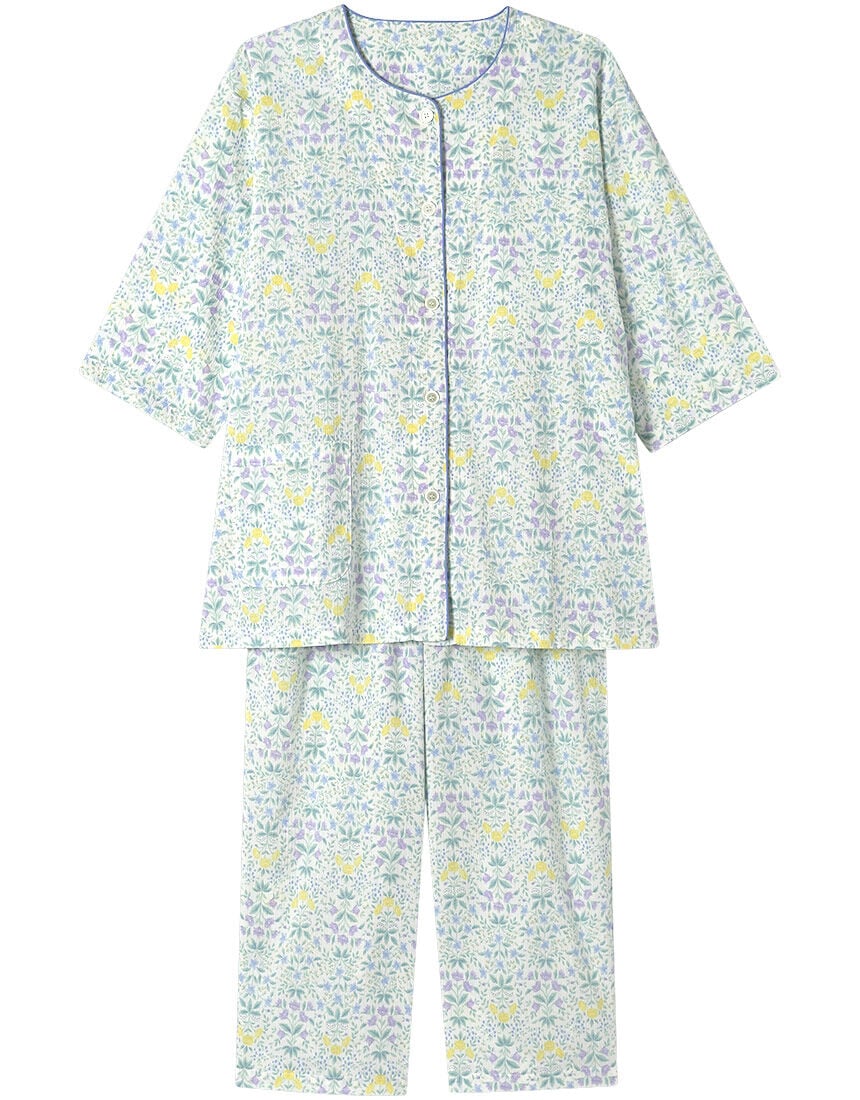 ■【綿100%】【高島ちぢみ(R)】【通気性】【吸汗速乾性】上品なお花柄 パジャマ