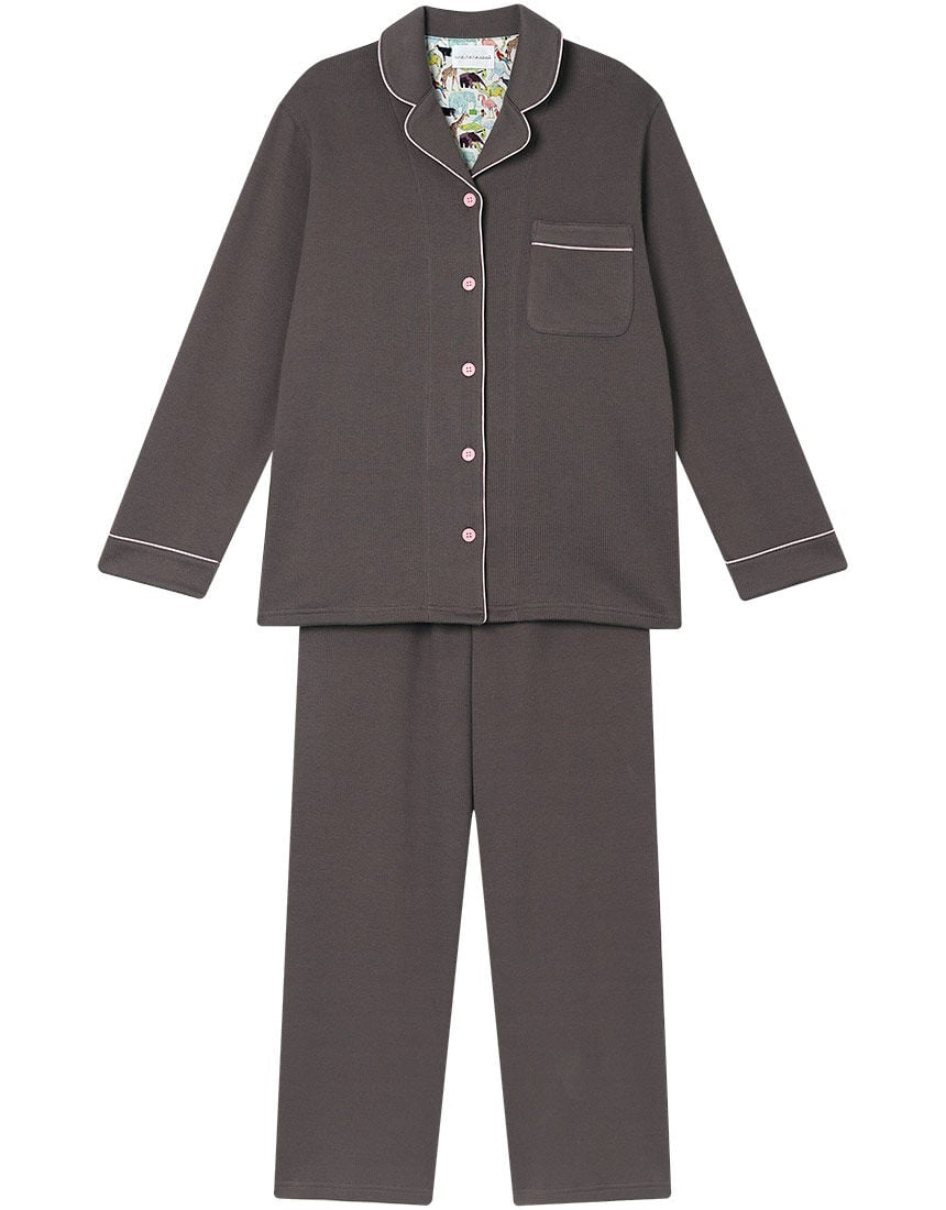 ■【綿混】ソフトコットンリブ 長袖開襟パジャマ MADE WITH LIBERTY FABRIC パジャマ