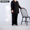 日本製の高級感漂うワンランク上のブラックフォーマルです。厳選した素材と熟練の職人が縫製した妥協のない品質をお届けいたします。■並んだときに差が付く極上の黒厳選した染料や深色剤で光の反射をコントロールする低屈折樹脂加工を施し、より濃く深い黒を表現しております。■「2WAYストレッチ」でシワになりにくく、適度な反発性もある、仕立て映えする素材を使用しています(ジャケット・パンツ)。ブラウスはストレッチ性に優れた柔らかい肌ざわりのシフォンを使用しています。■首まわりを美しく見せるスタンドカラージャケット後衿はスタンドカラー仕様で、首元をさりげなくカバー。すっきりとしたカッティングが印象的なノーカラージャケットです。ヒップラインを覆う、やや長めの着丈で安心感のあるシルエット。袖口にはスリットを入れ、折り返して長さの調整も可能です。■2WAYの着こなしができるブラウス薄手素材を2枚重ねにした、軽やかな仕立て。内側の裾をウエストインしても着用できる、2WAYデザインです。衿ぐりと袖口にタックを施し、全体をふんわりとやさしい印象に仕上げました。お手持ちのアイテムとも合わせやすく、着回し力の高い一着です。 ■脚をすっきり長くみせるパンツ後ろウエストはゴム仕様で、楽な履き心地。ウエストサイズの多少の変化にも対応します。センタープレスを施し、脚をすっきり長く見せる美脚シルエットに仕上げました。
