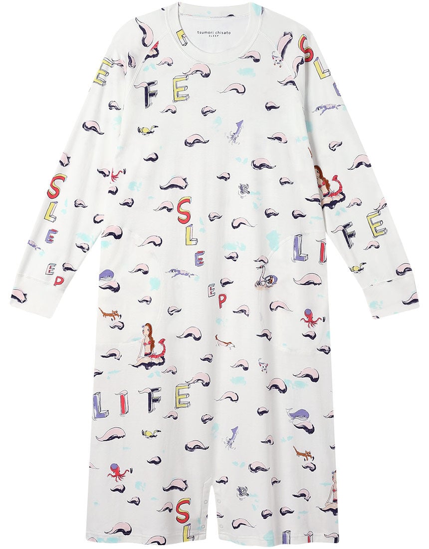 tsumori chisatoが2022年に発表したコレクションよりかわいくて楽しい冒険の旅をテーマに表現した柄が豊富に揃っています。シーズンテーマ 〜冒険の旅〜テーマ:春〈スワンボートに乗って冒険の旅に出かけよう どんな冒険が待っているのかな?〉自然を抜けたその先に、冒険の世界が広がる。森の中でグランピング。朝、鳥たちのさえずりで目を覚ましたら、朝靄に包まれた湖に浮かぶスワンボートを漕いで、出発です。自然を抜けると、ワクワクする冒険の世界が広がります。森の水滴が川となり、流れに乗ってその先へ。海へとたどり着つくまでに、さまざまな出会いや出来事が待っています。【ネグリジェ(ロング袖)】・本体に、ふわっとやわらかな綿100%のスムース素材を使用・スワンボートの旅が始まり、湖から海へとボートを漕いで出会ったゆかいな仲間たちとの様子を表現した柄・腕が上げやすく動かしやすいラグランスリーブのロンパースパジャマもございますパジャマはこちら【サイズ詳細】M:身幅55.0cm 身丈108.5cm 裄丈77.0cm L:身幅59.0cm 身丈109.5cm 裄丈78.0cm LL:身幅63.0cm 身丈111.0cm 裄丈79.0cm※出来上がり寸法を表示しております※サイズ詳細の寸法には多少の差異がございます出来上がり寸法の測り方についてはこちら※アイテムによって柄の出方が異なりますのでご了承ください。【tsumori chisato SLEEP】毎日をもっと楽しく過ごせるように。嬉しいとき。不安なとき。ひとりのとき。家族といるとき。どんなときでもHAPPYなものを身につけて、笑顔になってもらいたい。デザイナー"津森千里"氏のそんな気持ちを表現したブランド。