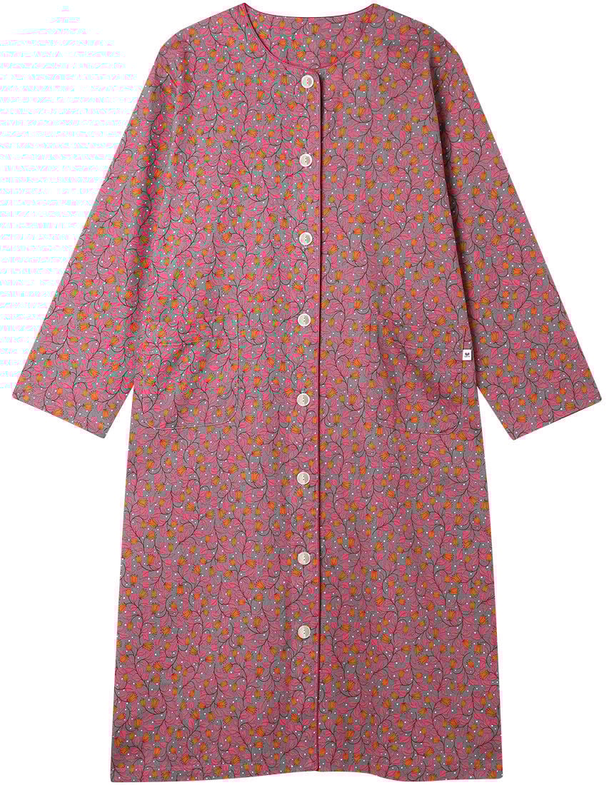 「ワコール人間科学研究開発センター」の女性の体型データをもとにしたグランダー独自のサイズ設計は、ゆったり快適な着ごこち。グランダーならではの便利でやさしい工夫をほどこした親切設計です。・本体に、強撚糸を使用した綿100%のボイルピケ素材を使用・通気性がよくさらっと快適・可憐なベルフラワーをモダンなカラーでシックな雰囲気に仕上げたプリント・袖口=ゴム通し口有り同じ柄のパジャマもございますパジャマはこちら【サイズ詳細】ロング袖SP:身幅51.0cm 着丈104.5cm 身丈107.0cm 肩幅42.0cm 袖丈51.0cm MP:身幅55.0cm 着丈104.5cm 身丈107.5cm 肩幅44.0cm 袖丈51.0cm LP:身幅59.0cm 着丈104.5cm 身丈107.5cm 肩幅46.0cm 袖丈51.0cm※出来上がり寸法を表示しております※サイズ詳細の寸法には多少の差異がございます 出来上がり寸法の測り方についてはこちら※アイテムによって柄の出方が異なりますのでご了承ください。