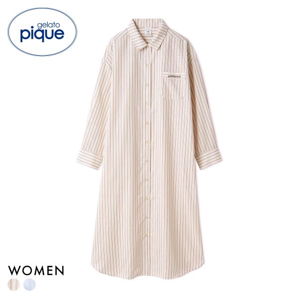 ■ジェラートピケ レディース ストライプシャツワンピース ジェラピケ パジャマ ルームウェア gelato pique