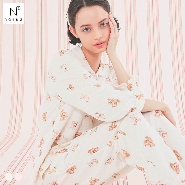 ■ナルエー パジャマ 裏綿接結(綿入り)テディーベアシャツパジャマ セットアップ 上下セット ルームウェア 長袖 Narue