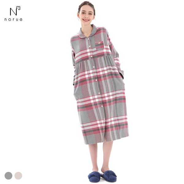 ■ナルエー パジャマ コットンフランネルチェックワンピース ルームウェア 長袖 NARUE