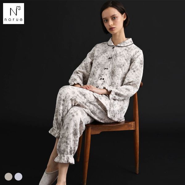 ■ナルエー パジャマ 裏綿接結(綿入り)トワルドラパンシャツパジャマ セットアップ 上下セット ルームウェア 長袖