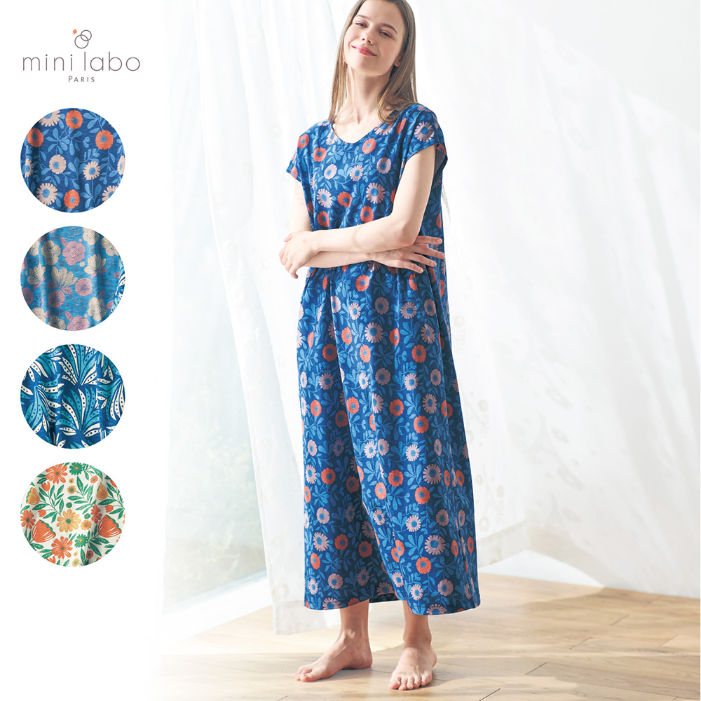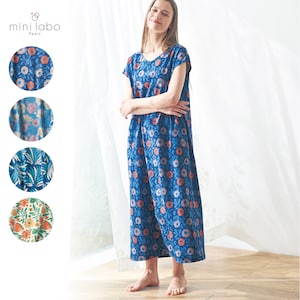 ―デザイン・スタイリング―・お風呂上がりにさっと着て、そのまま過ごせるワンピース・ミニラボデザインの鮮やかなカラーとモチーフで気分もUP・風が通るようなゆったりシルエット・お好みの着用感に合わせて選べる「丈短め」「丈長め」の2サイズ展開 ・裾のボタンを留めればロンパース風になり、寝返り時のめくれ上がりを防止 ・肌に張り付きにくく、汗をかいた肌にも快適・汗が引くまでのクールダウン用にぴったり・旅行先の温泉やサウナ後にもおすすめー素材ー・さらっとした肌触りの綿100%ダブルガーゼ素材・吸水性に優れ、湯冷めを防ぎながらムレにくく快適 ・洗いをかけてくしゅくしゅとした涼しげな表情ー機能ー・裾がまくり上がりにくい内側スナップボタン付き・そのまま寝てしまっても安心