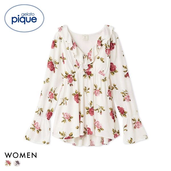■ジェラートピケ レディース ヴィンテージローズ柄プルオーバー ジェラピケ パジャマ ルームウェア gelato pique