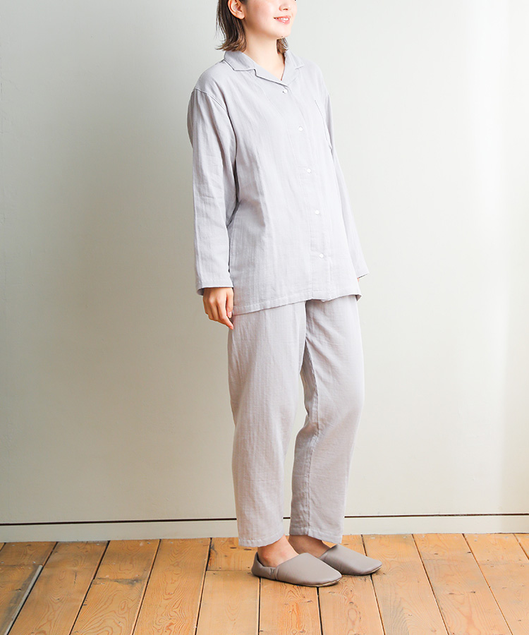 ■パシーマ(R)あったかパジャマグレー レディース ガーゼ 冬用 綿100%ガーゼ グレー L【大きいサイズ】 【レディース・女性】