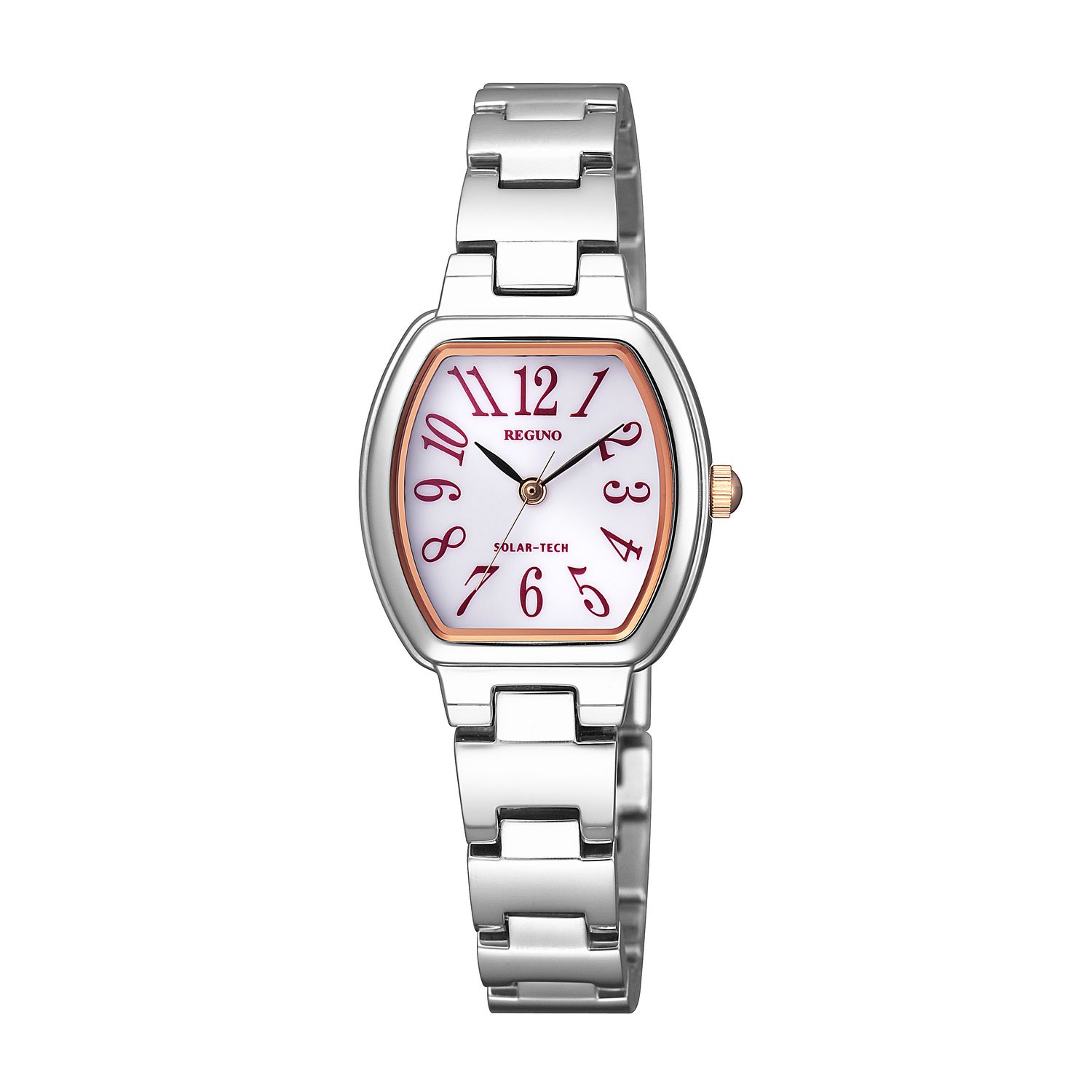 ビジネスからカジュアルまでシーンを選ばないデザイン性と機能性を兼ね備えたスタンダードウオッチ。定期的な電池交換がいらないソーラーテック搭載ウオッチです。オールアラビア数字文字板を採用した視認性の高さが特徴です。華奢なブレスレットタイプながら、指先やツメを傷めにくい両プッシュ中留を採用した実用性に配慮したモデルです。やわらかな印象を与えてくれるオーバルケースと細身のブレスレットが、腕元を上品に演出します。