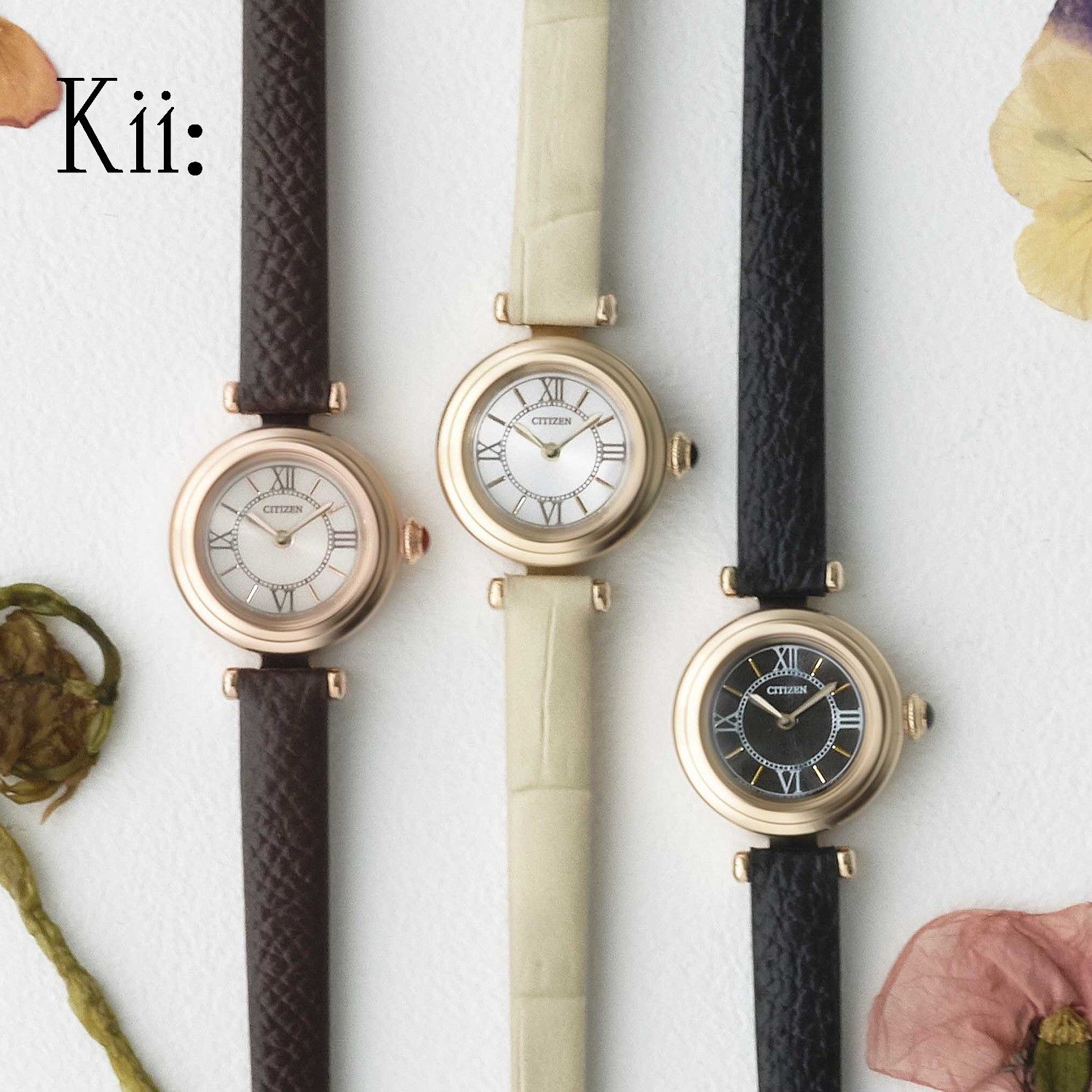 ・ころんとした形に、華奢な佇まいが魅力のラウンドケース。・インデックスにはクラシカルでマニッシュな印象のローマ数字フォントを採用し、小さめサイズながらも視認性に優れています。・風合いのある牛革バンドは、裏地のカラーリングにもこだわり、細部のおしゃれまで楽しめる1本です。クラシカルでありながらも、洗練されたバランスが魅力的なKii:。ブレスレットのように時計を楽しんでもらえるよう誕生した腕時計ブランド。