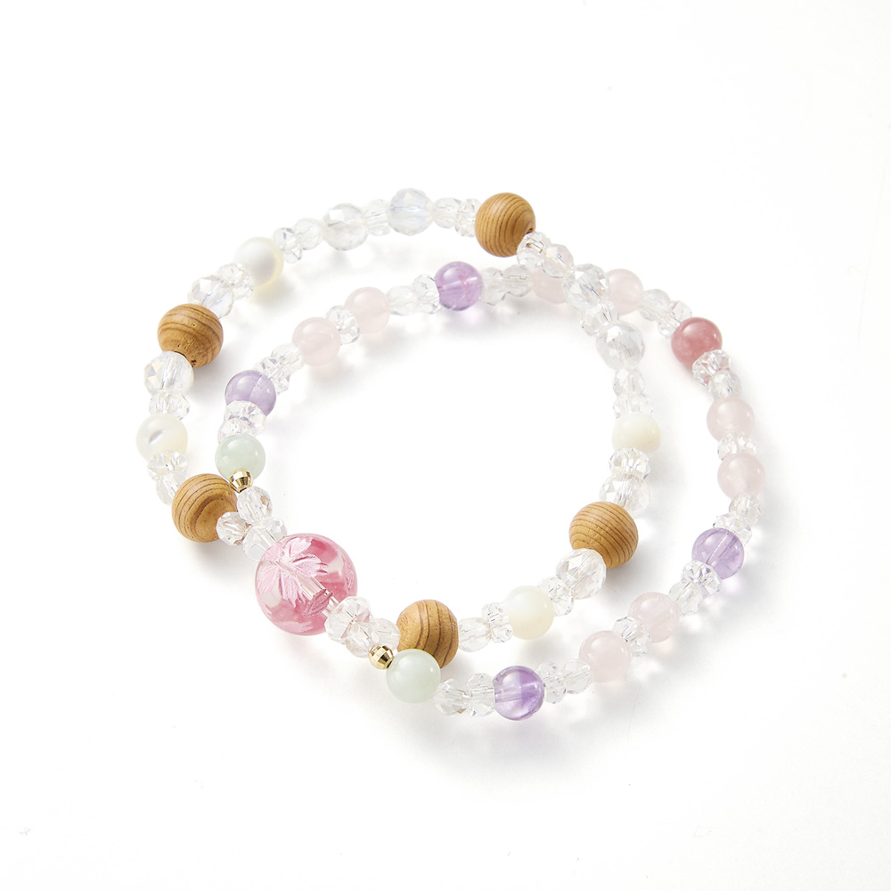 はんなり桜彫り水晶がポイントに2連デザインの上品な仕上がり屋久杉は、有数のパワースポットである屋久島で「神の宿る樹」として篤い信仰の対象とされてきました淡いグリーンの宝石翡翠と18金ミラーカット玉が高級感と豪華さを演出インカローズ、ローズクォーツ、ラベンダーアメジスト、マザーオブパールなど女性に人気の天然石を使用