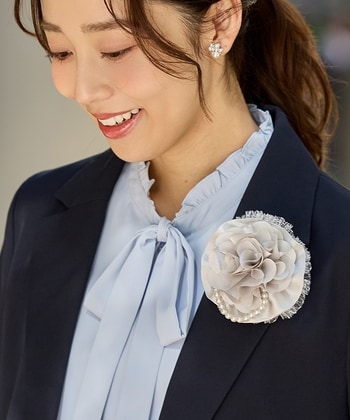 ■【Honeys公式 / ハニーズ】コサージュ&イヤリング レディース ライトグレー プチプラ