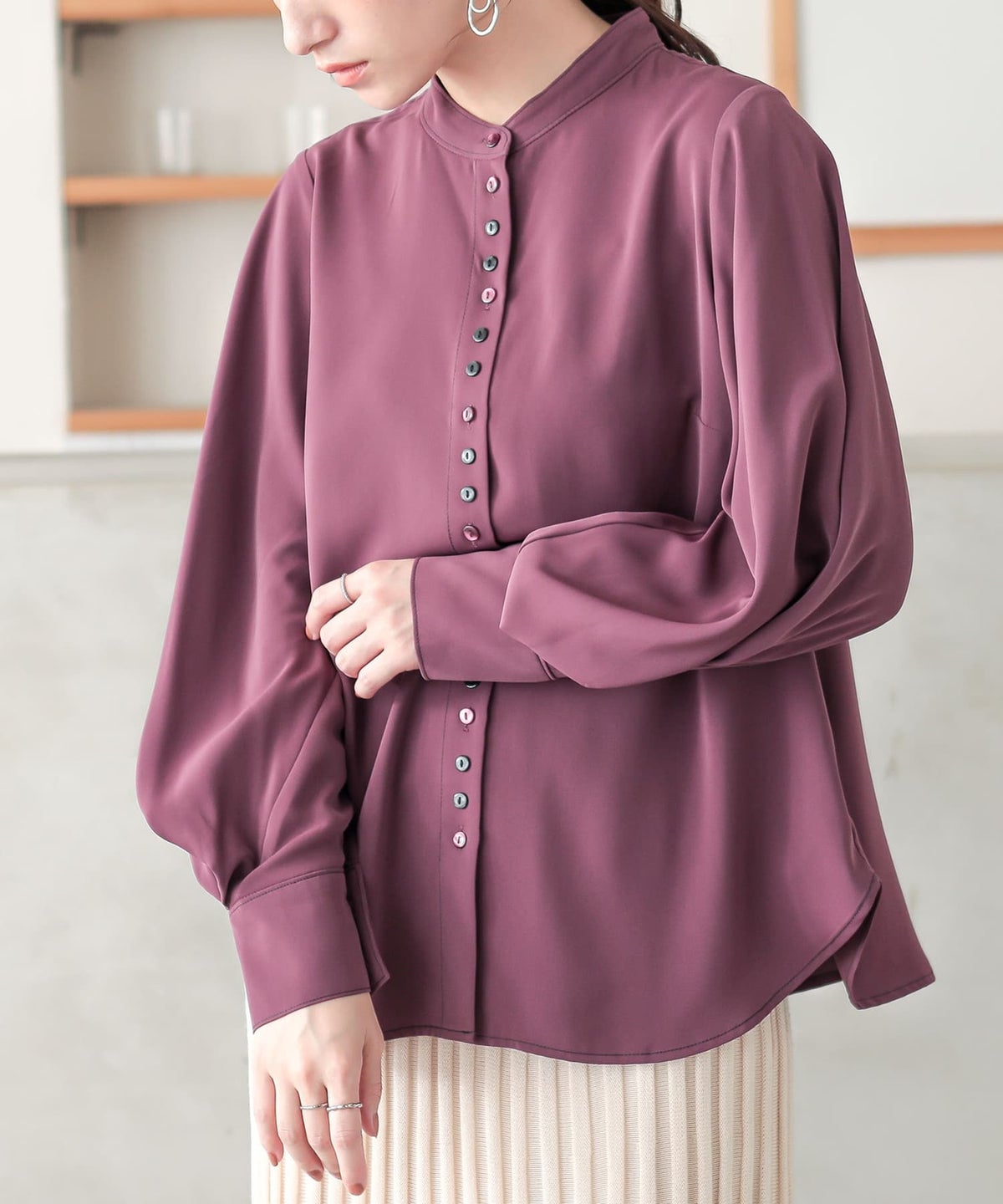 ■タックデザイン袖ブラウス 1(M~L) ダークパープル