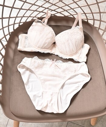 【おすすめポイント】・ノンワイヤーならではのラクな着け心地。・サイズに合わせた下厚カップで、自然な高さの丸いバストラインをメイク。・刺しゅうレースにチュールフリルをプラスした華やかなデザインながら、おそろいのショーツと合わせてもお手頃価格。【こんな人、こんな時に】・ワイヤー入りブラが苦手・レース使いのフェミニンなデザインが好き・普段使いのブラジャーを安くそろえたい【バストメイク・機能】・下厚カップの下側にパワーネット二つ折りのサポートパネル付きで、カップとバストの広がりを抑え、自然な高さ&丸みをメイク。・B・Cカップ、D65・70、E65は厚手でしっかりボリュームアップ。D75、E70・75はやや薄手でバストをナチュラルに整える。・カップ肌側はポリエステル。ノンワイヤー。・ストラップ付け根が三角形になった仕様で、カップの引き上げをサポート。・サイドベルトはパワーネット1枚。ボーン入りで安定感を高める。【デザイン】・線画調の刺しゅうが繊細なエンブロイダリーレースに、ギャザーを寄せてカップをカバー・フロント下辺に、透け感あるチュールのフリルをあしらってスウィートに・中央のドロップ型クリアストーンチャームで高級感アップ