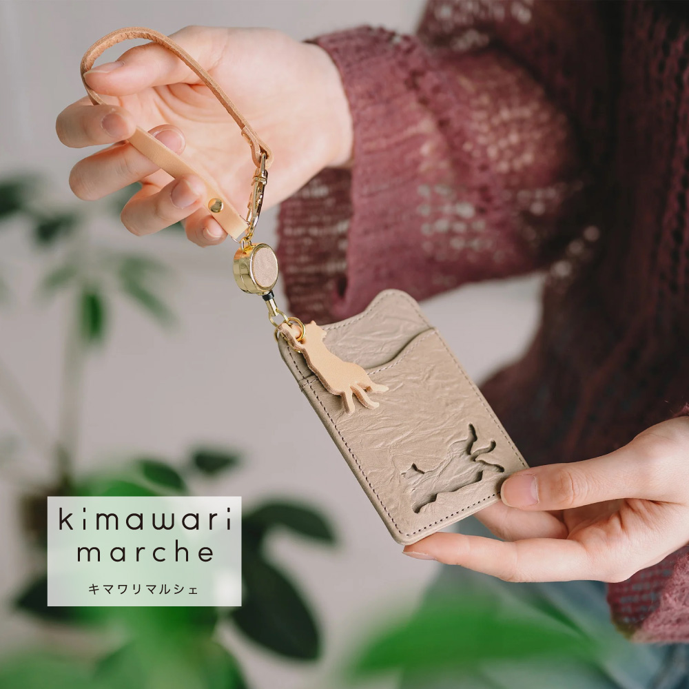 ■【ベルメゾン】「通勤にも、ぴったり」保護ネコを支援できる本革リール付きパスケース[日本製]