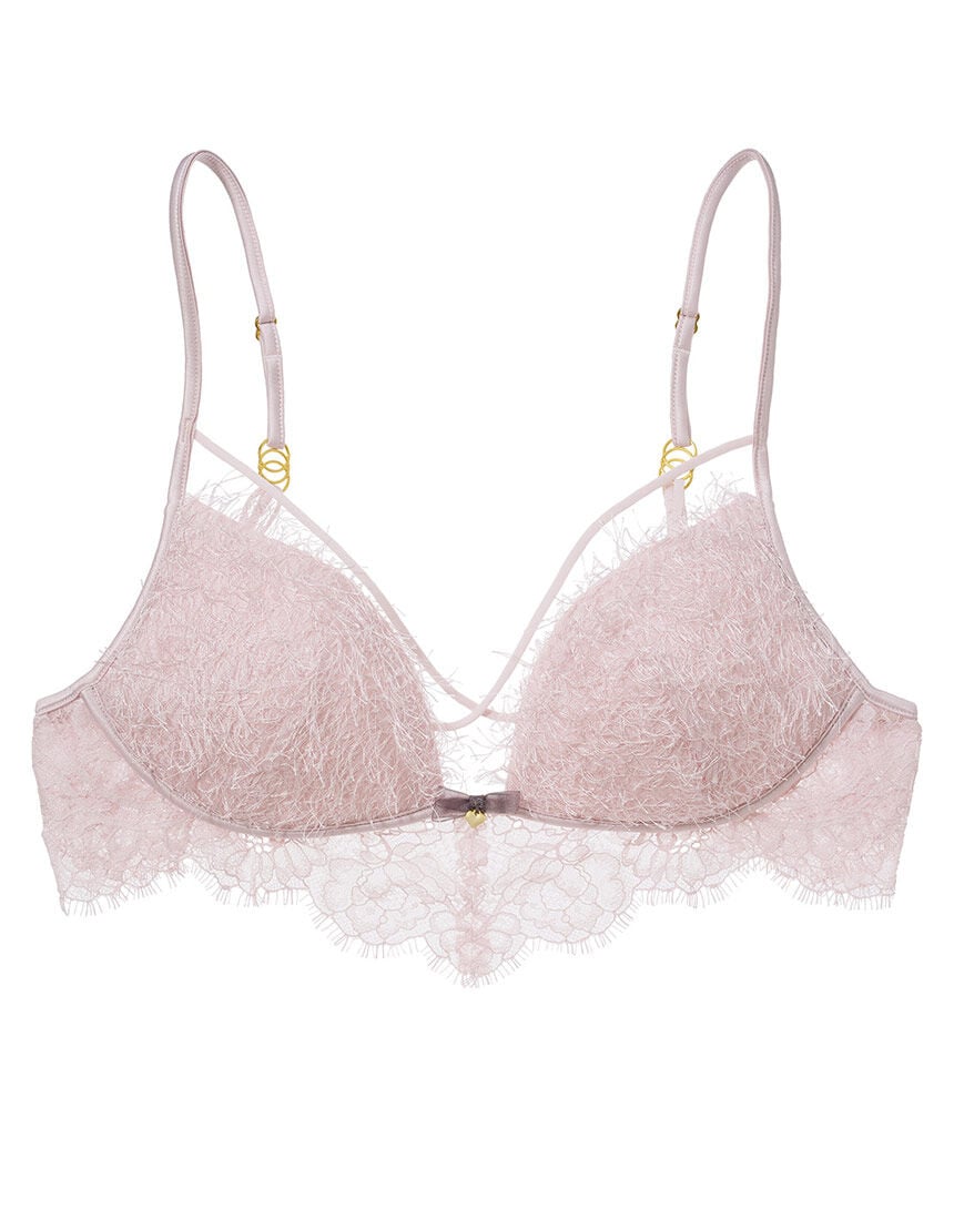 【おすすめポイント】・ふわふわと毛足の長いシャギーとアイラッシュレースの新鮮な組み合わせ。ホリデイシーズンにもぴったりな、大人可愛いランジェリーシリーズ。・ごく軽い着け心地のノンワイヤー。・同シリーズのショーツも展開。【こんな人、こんな時に】・ホリデイや特別なシーンに、華やかなランジェリーで装いたい・インポートライクでファッション性の高いランジェリーが好き・ワイヤーから解放され、リラックスして過ごしたい【バストメイク・機能】・ノンワイヤーならではの軽くラクな着け心地。・均一な厚みのモールドカップで、ナチュラルなバストラインに。・カップ肌側はソフトなピーチスキン生地。・バックのZカン&ループで着脱。【デザイン】・カップ部はふわふわと毛足の長いシャギージャカード生地・ネックラインに華奢なマカロニテープをクロスさせ、胸元にセクシーな抜け感を演出・センターにシアーなオーガンジーリボンと、ゴールドのハートチャーム付き・サイドベルトからアンダーバストにかけては、繊細なリジッドアイラッシュレースを贅沢に使用・ストラップ〜カップ脇〜サイドベルト上辺とカップ下辺は、ストレッチサテンテープ使い。インポートライクで洗練された表情・背中側ストラップは、3連リング型チャームとマカロニゴムテープ3本のあしらいで、後ろ姿までスタイリッシュ