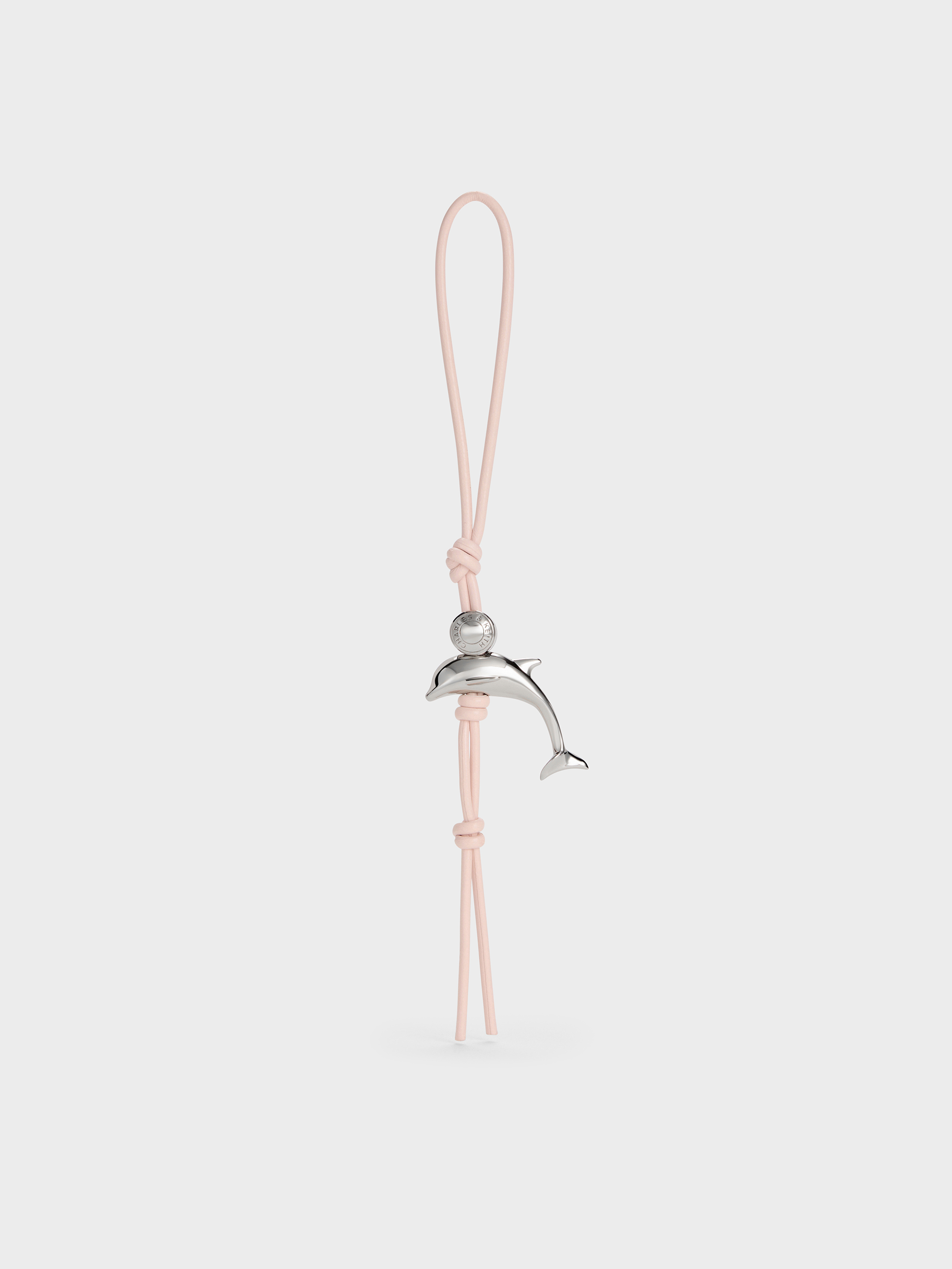 Delfinaシリーズから、ドルフィンロープノットチャームが登場。メタルライクなイルカのシルエットにこだわったチャームです。シルバーカラーとソフトピンクカラーがフェミニンな印象をプラスします。バックやポーチまでもマッチしやすいアイテム。ご自身用にはもちろん、ギフトにもおすすめです。