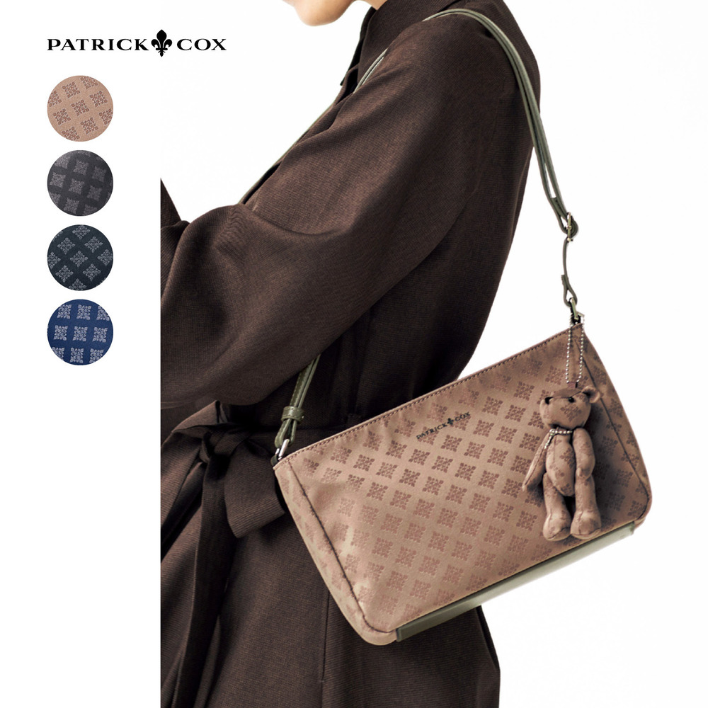 ■【パトリックコックス/Patrick Cox】くまチャーム付きジャカード柄ショルダーバッグ
