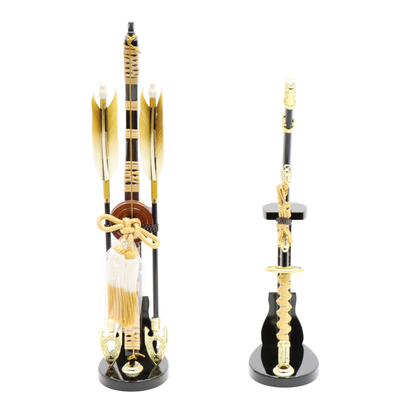■アウトレット品 五月人形 その他単品 弓太刀 13号 黒ツヤあり木製台 高さ40cm インテリア ディスプレイ 見切処分品