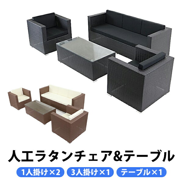 ■人工ラタンソファ 強化ガラス 3人掛け1脚 1人掛け2脚 テーブル1台 シングルソファ トリプルソファ 3P1P 籐 家具 インテリア おしゃれ リ