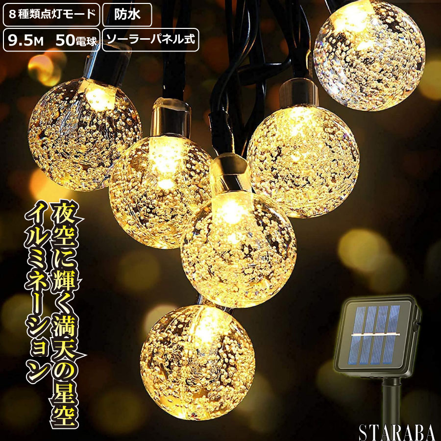 ■パーティー ライト LED 8パターン ソーラーパネル 9.5m 防水 インテリア バースデイ 演出 ハロウィン 装飾 送料無料