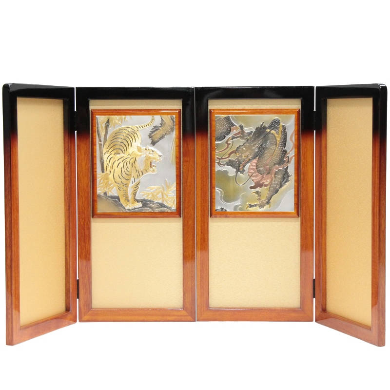 ■アウトレット品 五月人形屏風単品 18号承明 雫彫金龍虎 21ya1566 飾り幅目安75〜80cm (C-37sb) インテリア ディスプレイ 見切処分品