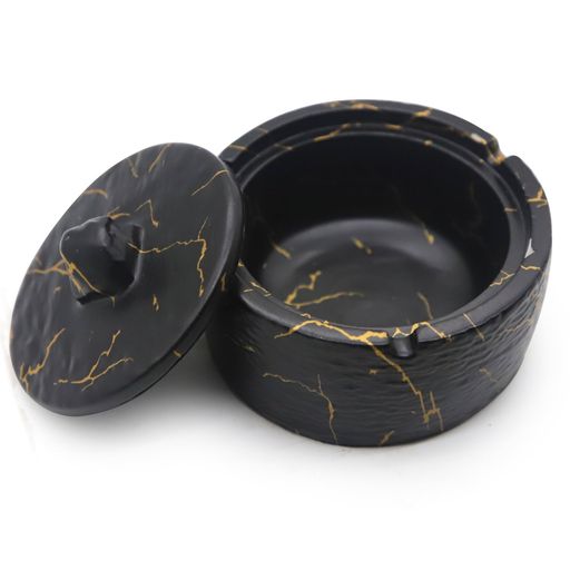 ■TOSSOW 灰皿 ふた付き 卓上 おしゃれ 防風 北欧 はいざら 大容量 洗いやすい 大理石灰皿 室内 屋外 兼用 インテリア ブラックゴールド