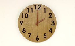 ナチュラルカラーがあたたかな、ナラの無垢材を丸く削り出した、ラウンド型の木製壁掛け時計です。直径280mmタイプは、6〜8畳のお部屋にぴったりなサイズ感。レーザー加工を施した大きく読みやすいインデックス(数字)も特徴です。針には鮮やかな素材を用いることで、カジュアルな印象に仕上げました。※お届けは時計1個のみとなります。その他小物・備品は付属いたしません。この商品は愛媛県西条市の家具工房・近藤工芸が製作しております。こだわりの逸品をぜひご堪能ください。【注意事項】●完全受注生産につき、お届けまでお時間を頂戴致します。●天然木のため、その都度、木目・色味・節・白太・入皮等の風合いが異なります。●また、反りや割れ等の変化が生じる場合もございます。●ならびに、木部は基本的に一枚板ではござい