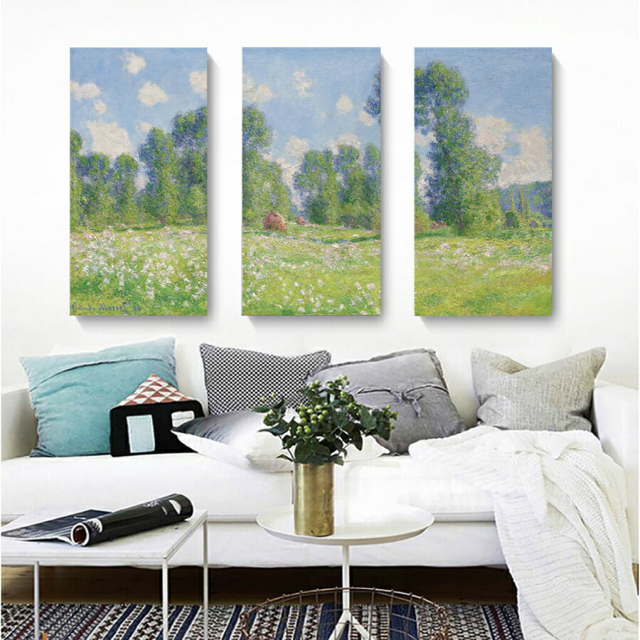 ■クロード・モネ ジヴェルニー、春の効果 3枚セット 油絵 風景画 壁掛け 名画 ファブリック オシャレ インテリア アートパネル プレゼント